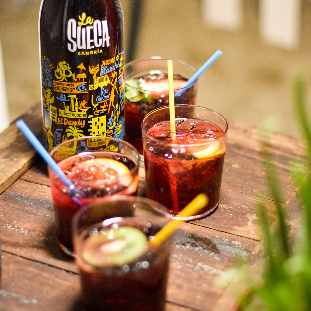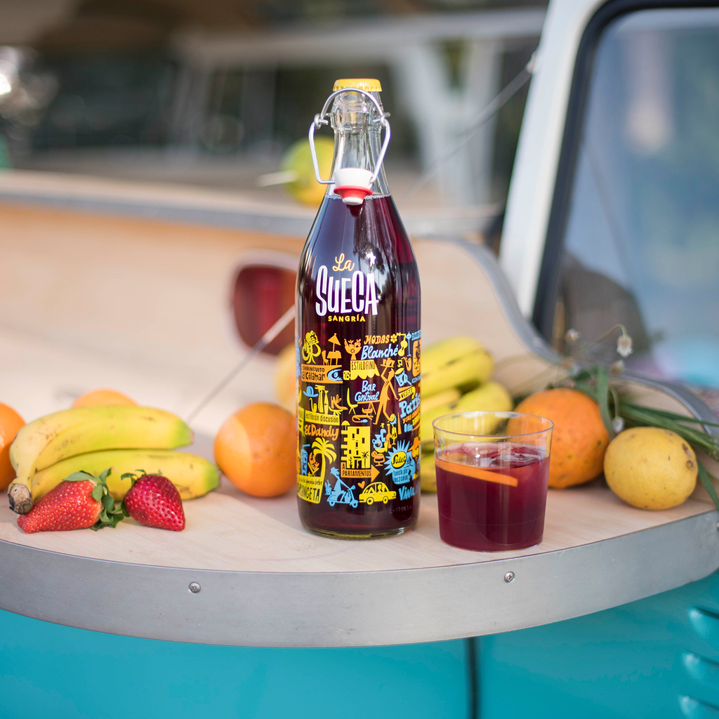 La Sueca es el retorno a la nostalgia. Un viaje al inicio del libertinaje y la democracia en España. La botella de sangría nos traslada al verano en un camping de Benidorm de los 60-70’s, a los guateques y a las primeras vacaciones en familia en un coche abarrotado de gente.